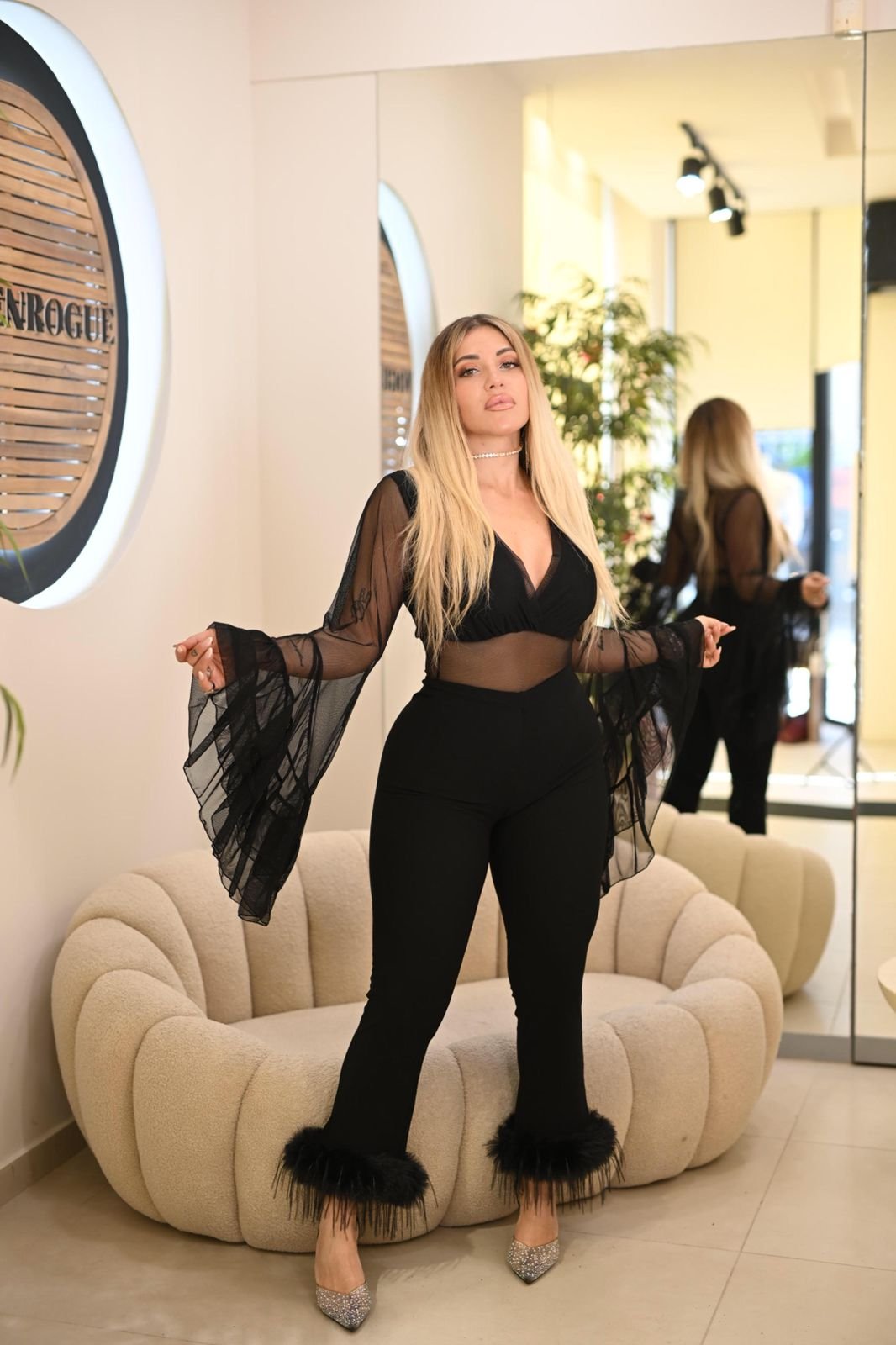 Διάφανο κορμάκι με κούμπωμα κόπιτσας μανίκια με balloon effect και επένδυση υφάσματος στο στήθος για χρήση και χωρίς στηθόδεσμο